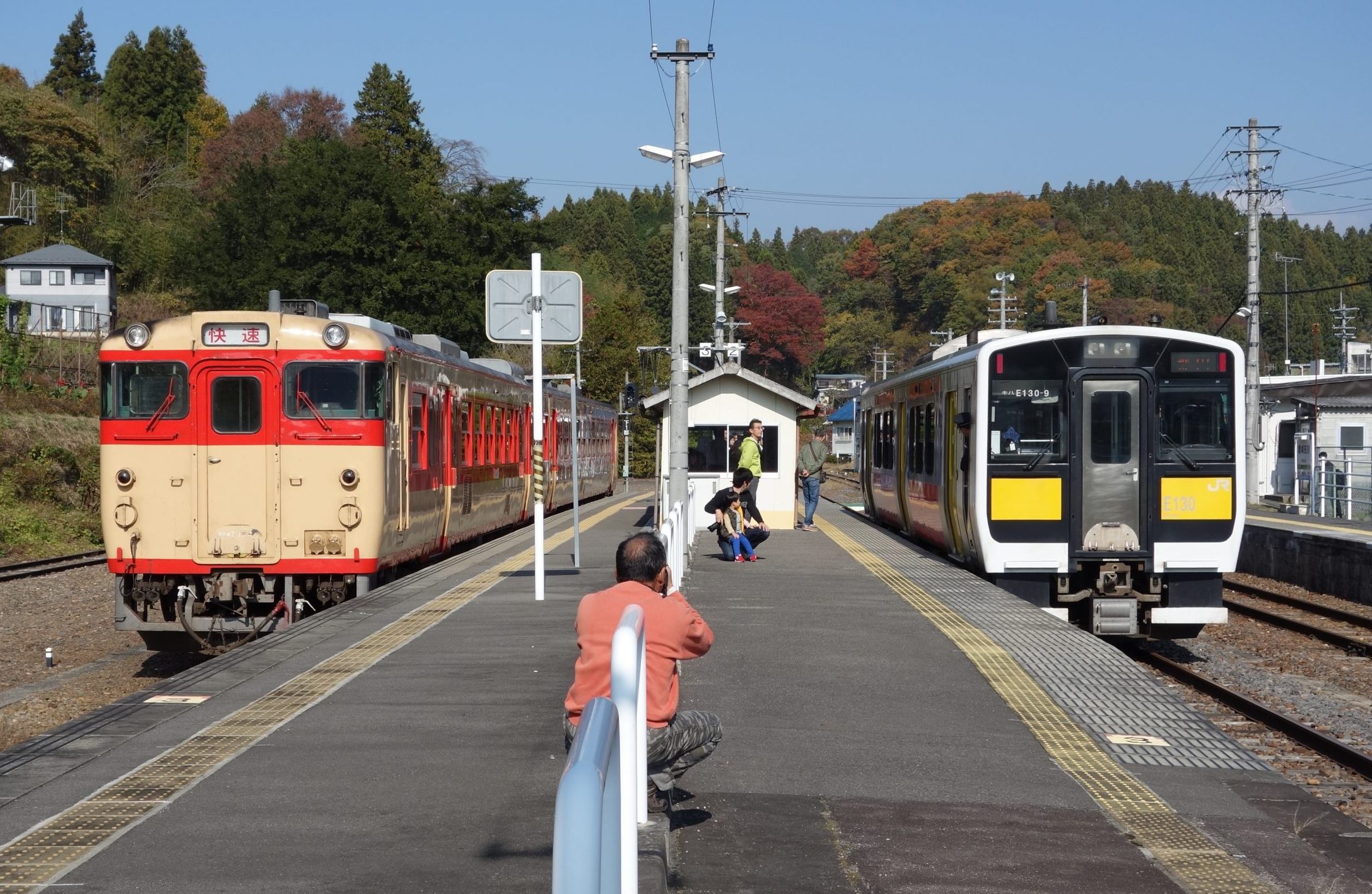 終点磐城石川駅には、懐かしい車両を見ようという撮り鉄の皆さんが。