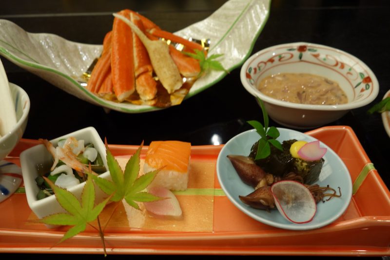 お宿の豪華な料理。新潟の幸のたまもの。
