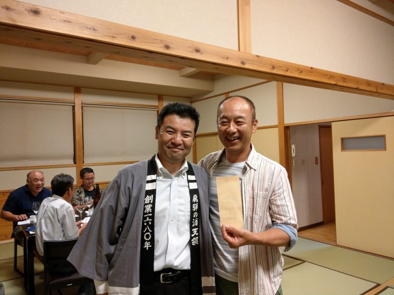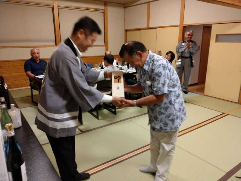 これにはみんなびっくり。一位の商品を杜氏さんから直接プレゼントいただきました。