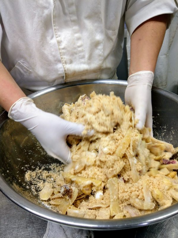 すべての皮に砂糖をまぶすように丁寧に混ぜていきます。