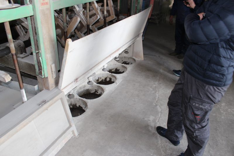 その下に一つ一つ釜と呼ばれる臼があり、そこで荒粉をついて粉にしていきます。