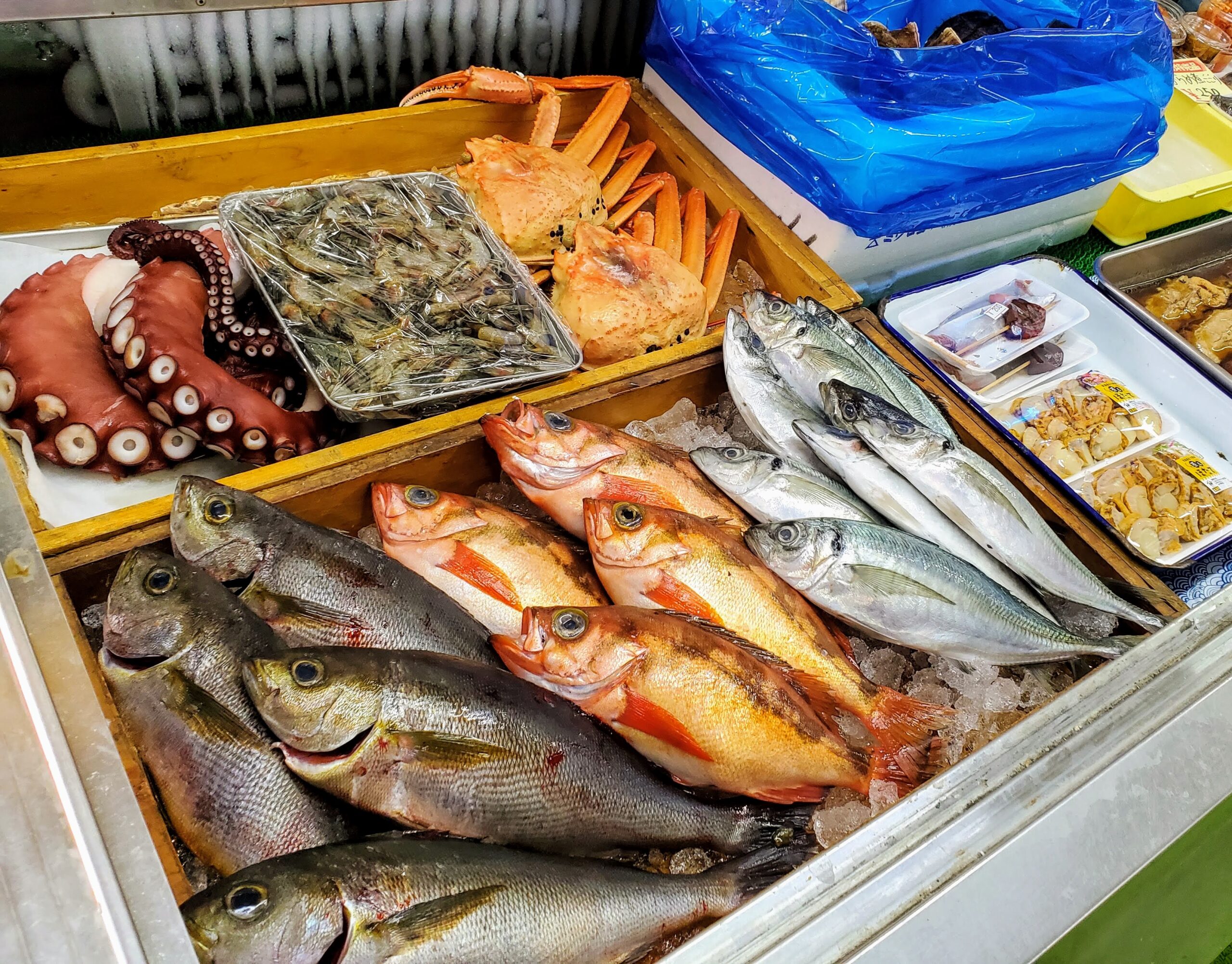 そろそろ閉店しようかと、お魚を片付けはじめた店主。