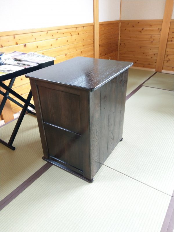 常陸太田市里美の「木工房SEEDS」の佐々木さんに収納付きの台を作っていただきました。