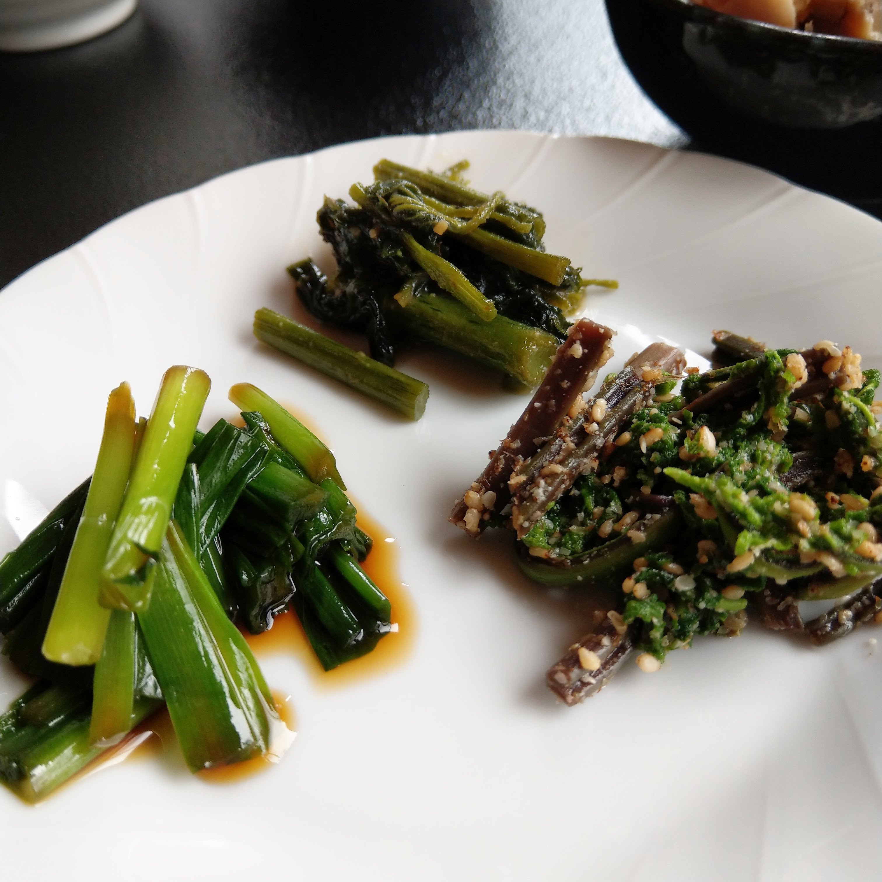赤こごみ胡麻和え 愛子味噌炒め