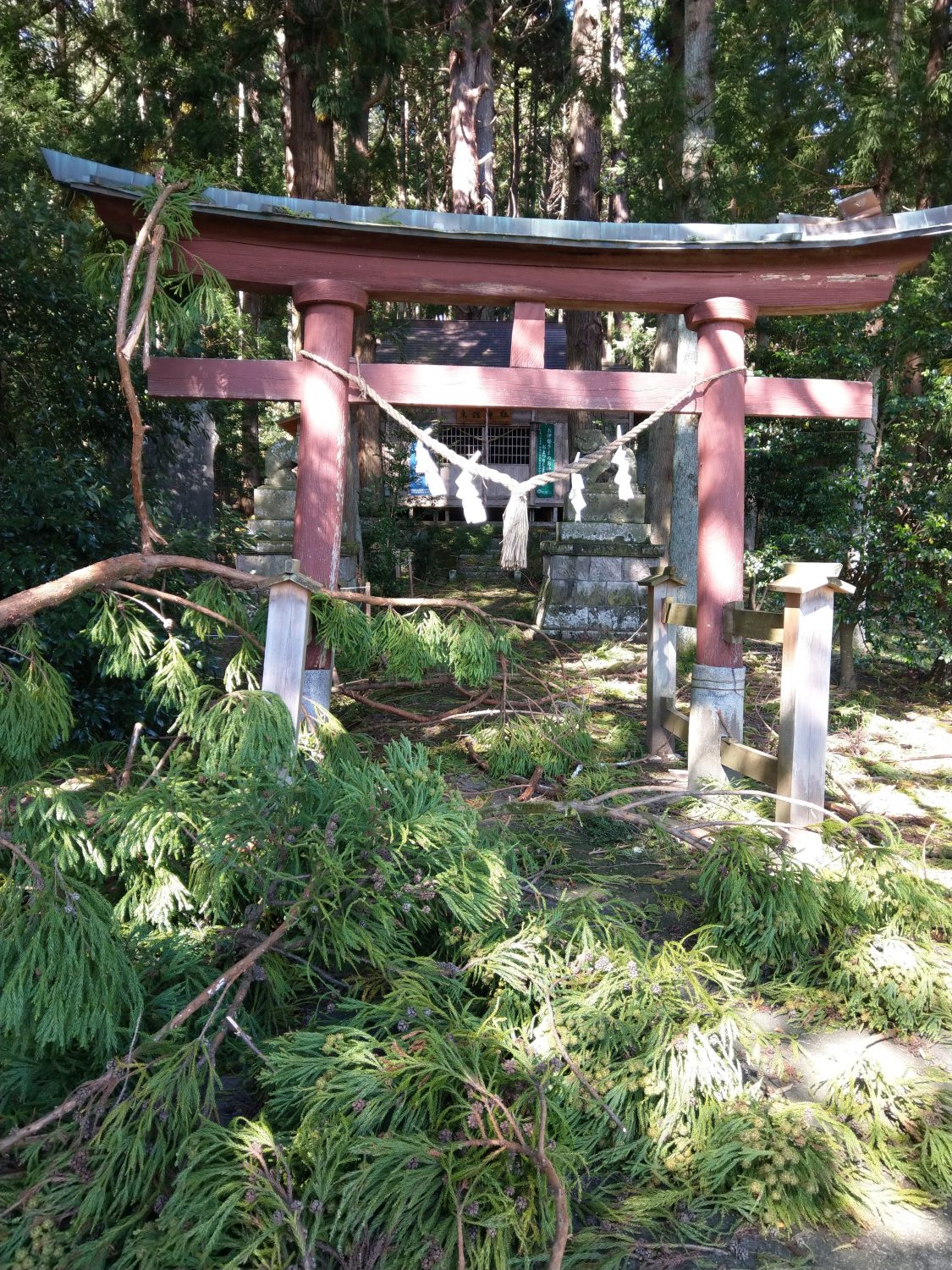 中でも東舘神社は、お社には特に影響がなさそうですが参道が杉の枝が散乱し、しめ縄が切れていてちょっと悲しくなるほどでした。