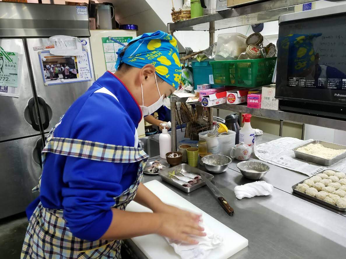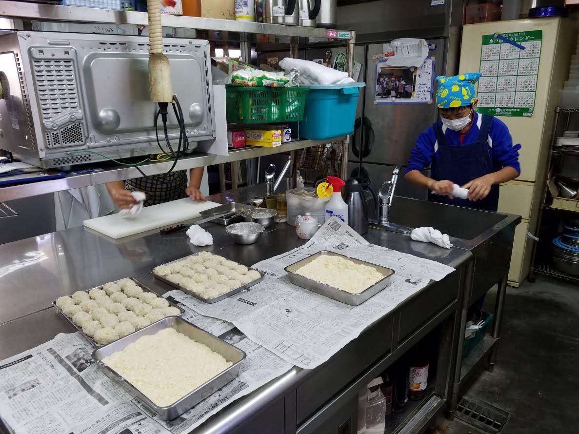 開店前の掃除をしたり、今度のやまつり元気祭でお出しするやまつりコロッケの衣付けなどをやってもらいました。