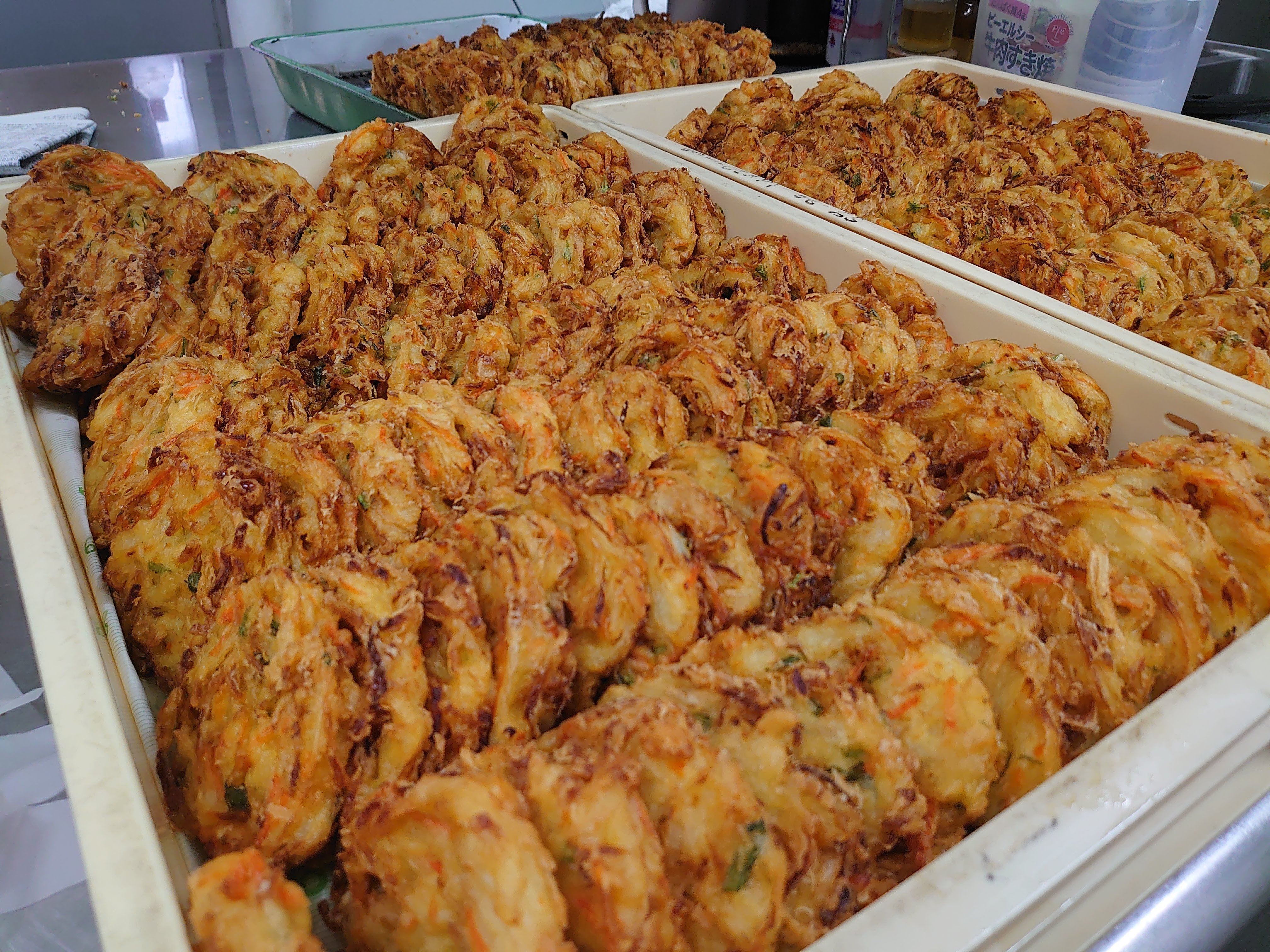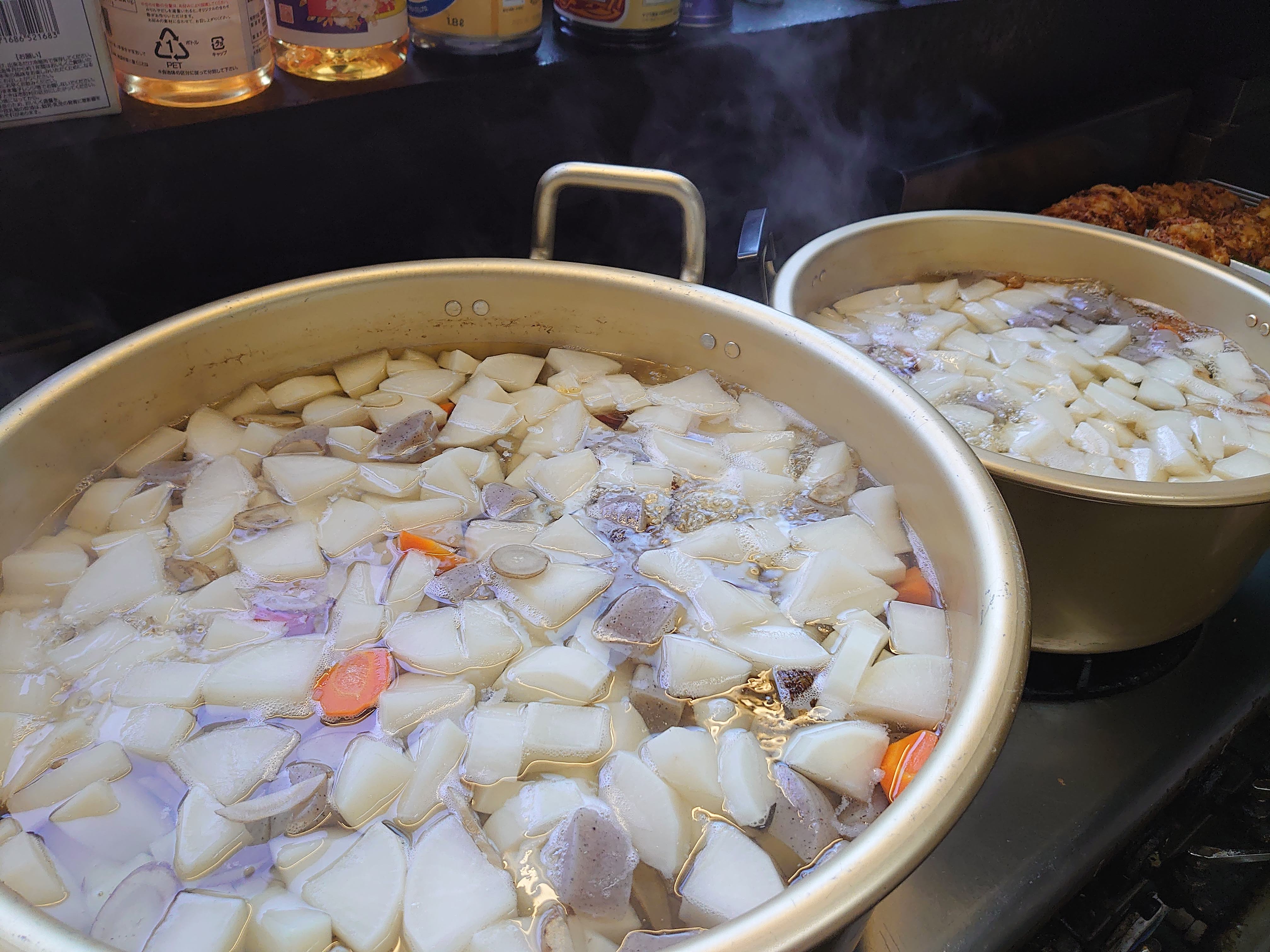 今日は朝からかき揚げを揚げたりモツ煮込みを順番に煮込んでいったり。
