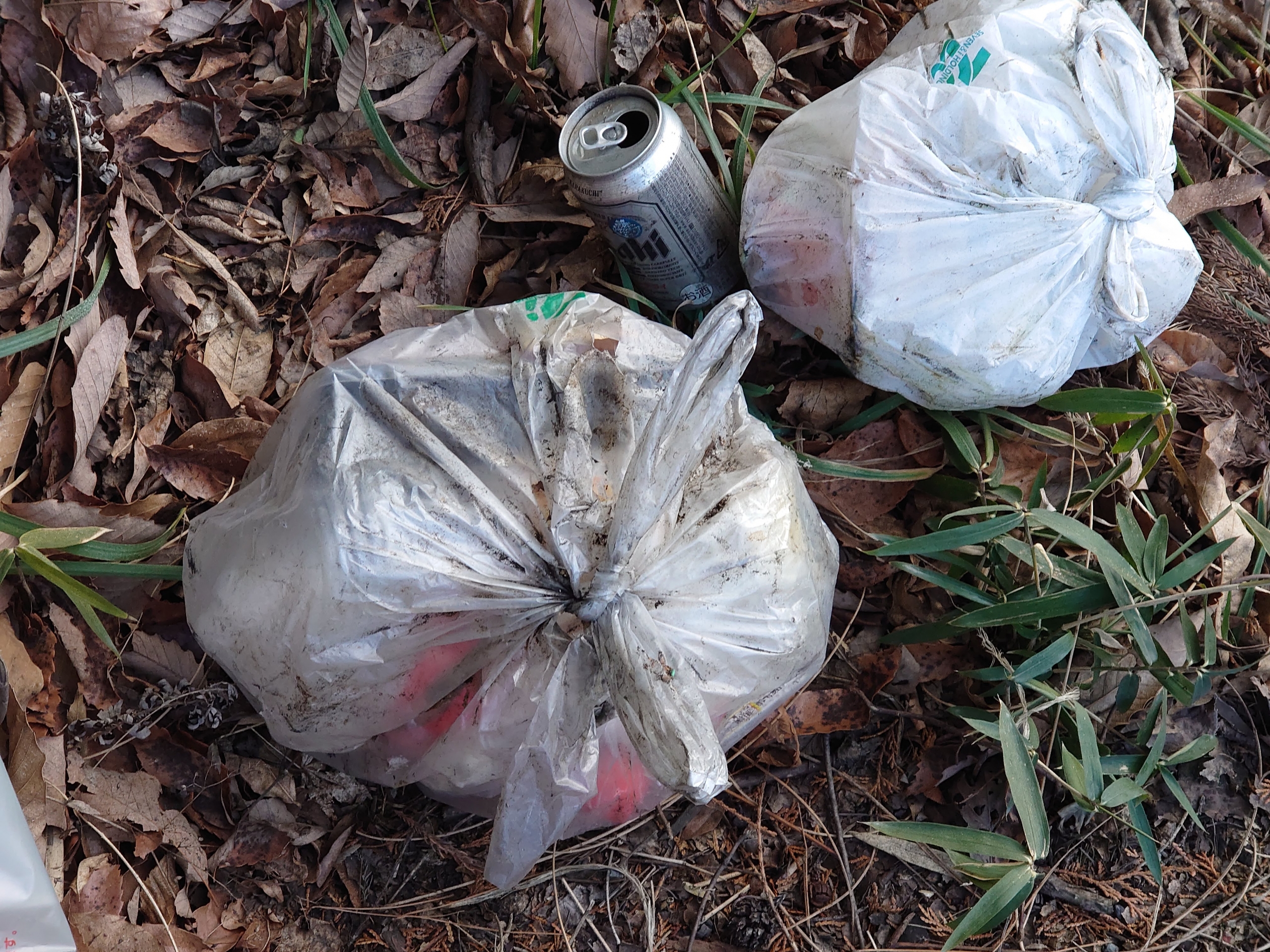 中にはコンビニなどのレジ袋に捨てやすいようきれいに潰された空き缶ゴミと可燃ごみが詰め込まれていたものも。