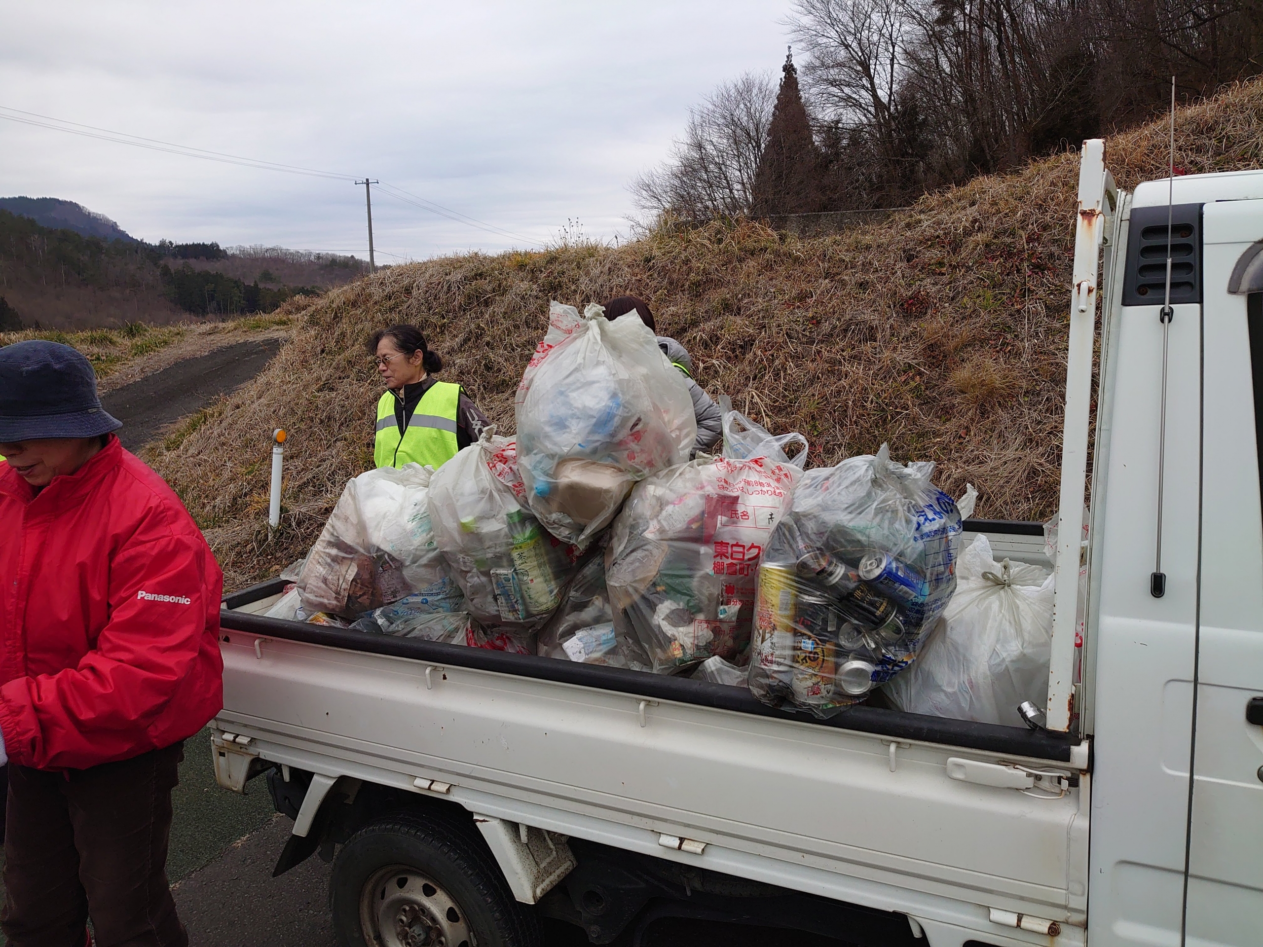 国道289号の県境に近いエリアを中心に、道路わきに散乱しているゴミを拾いました。