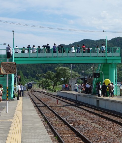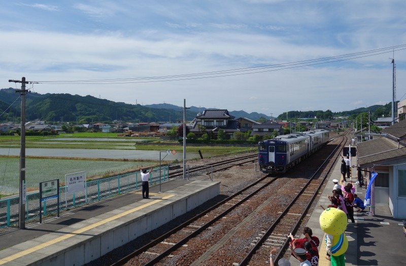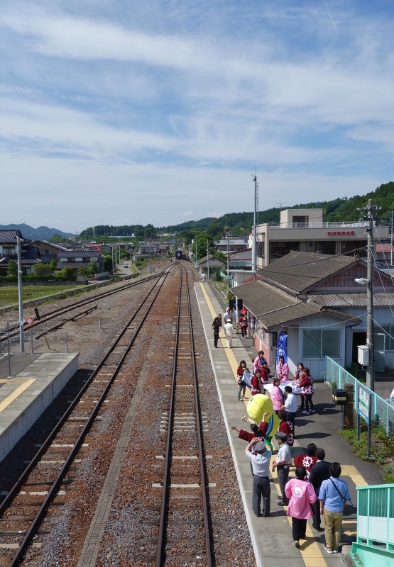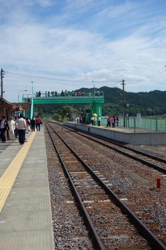 - 思えば水郡線でこんな風に人が列車を待つ光景を見るのが初めて。