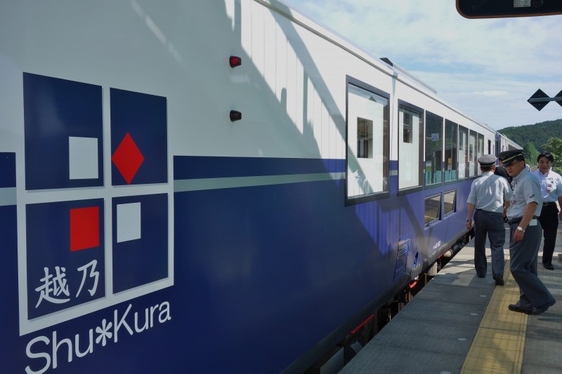 たまたま偶然昨日いらしたJR関係者のお客様に「越乃Shu*Kura(コシノシュクラ)」という、お酒をコンセプトに作られた新潟の車両だと教えていただきました。