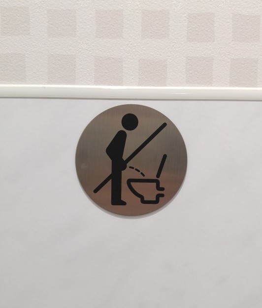 - 面白いピクトグラムを見つけたので、共用トイレに張りました。