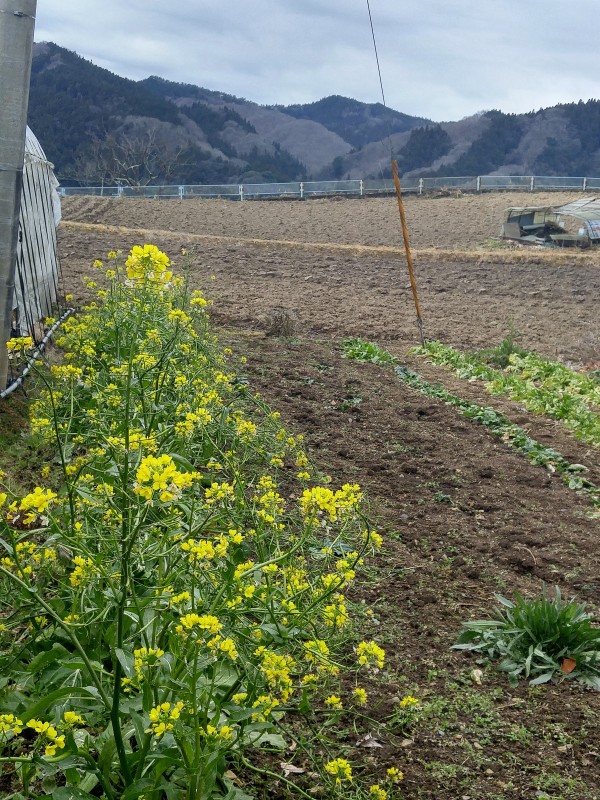 昨日歩いてお店に来たのですが、菜の花や紅梅が咲いていました。
