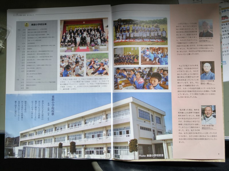 週末届いた町の情報誌「広報やまつり 3月号」で、店主や娘がお世話になった東舘小学校の特集ページが掲載されていました。