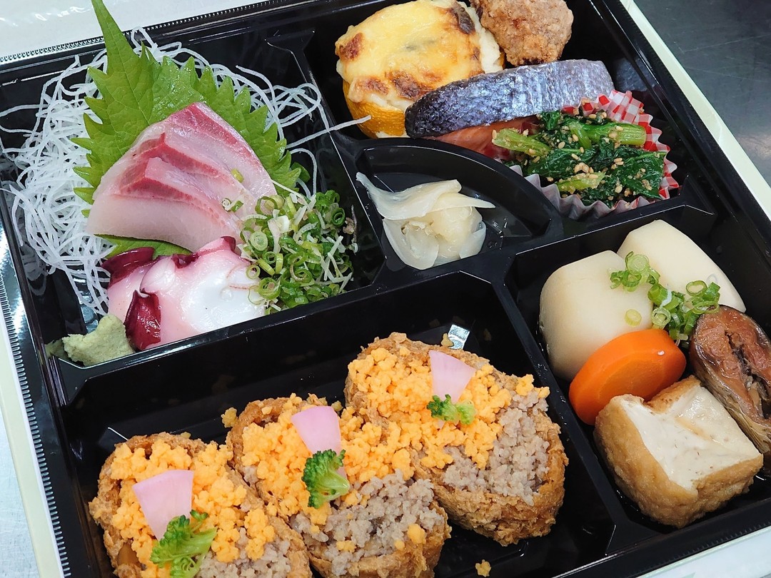 当店でのお食事はもちろん、お弁当やオードブルなどの仕出し料理・ちらしいなりやさかな家でお造りするお料理のテイクアウトでのご利用も可能です。